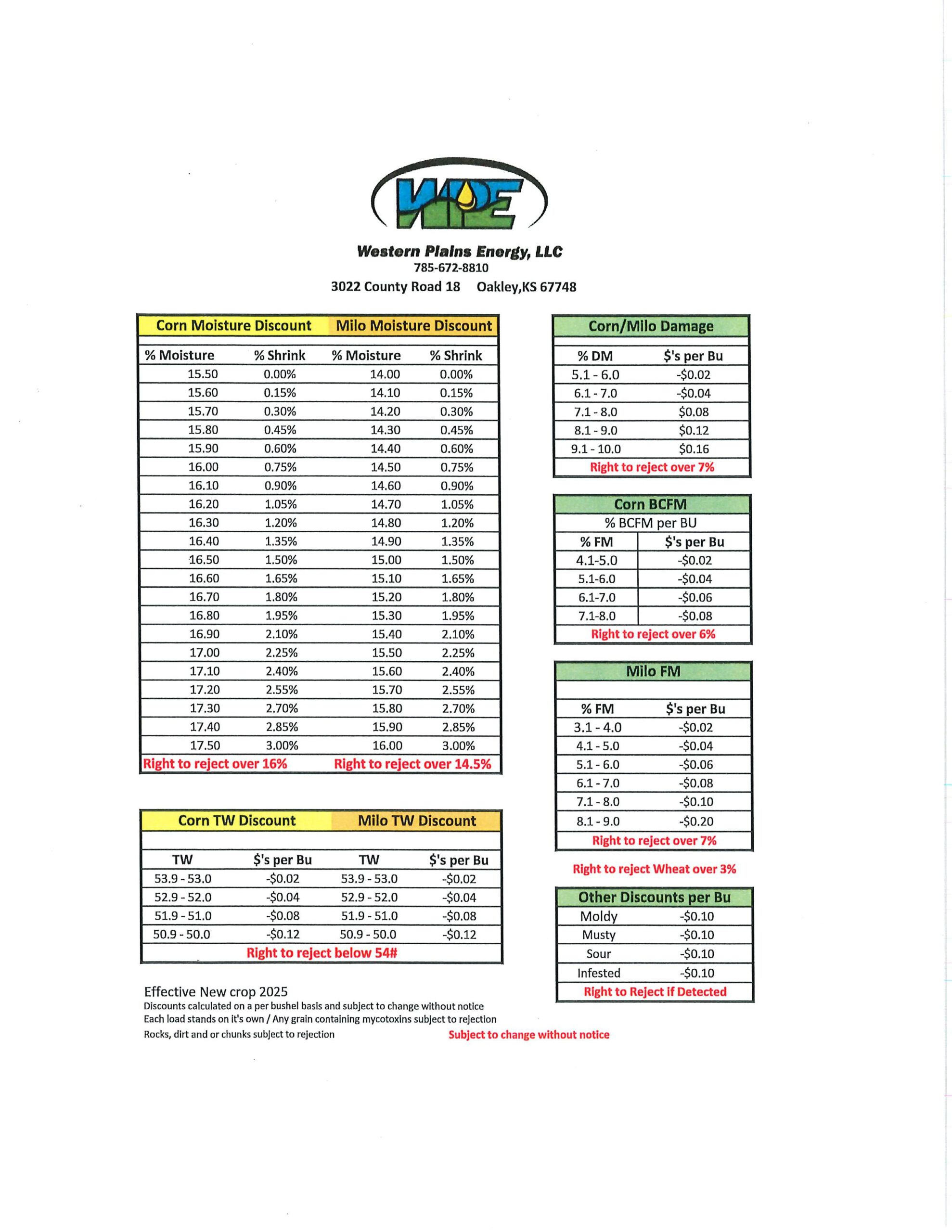 Note: Prices subject to change without notice